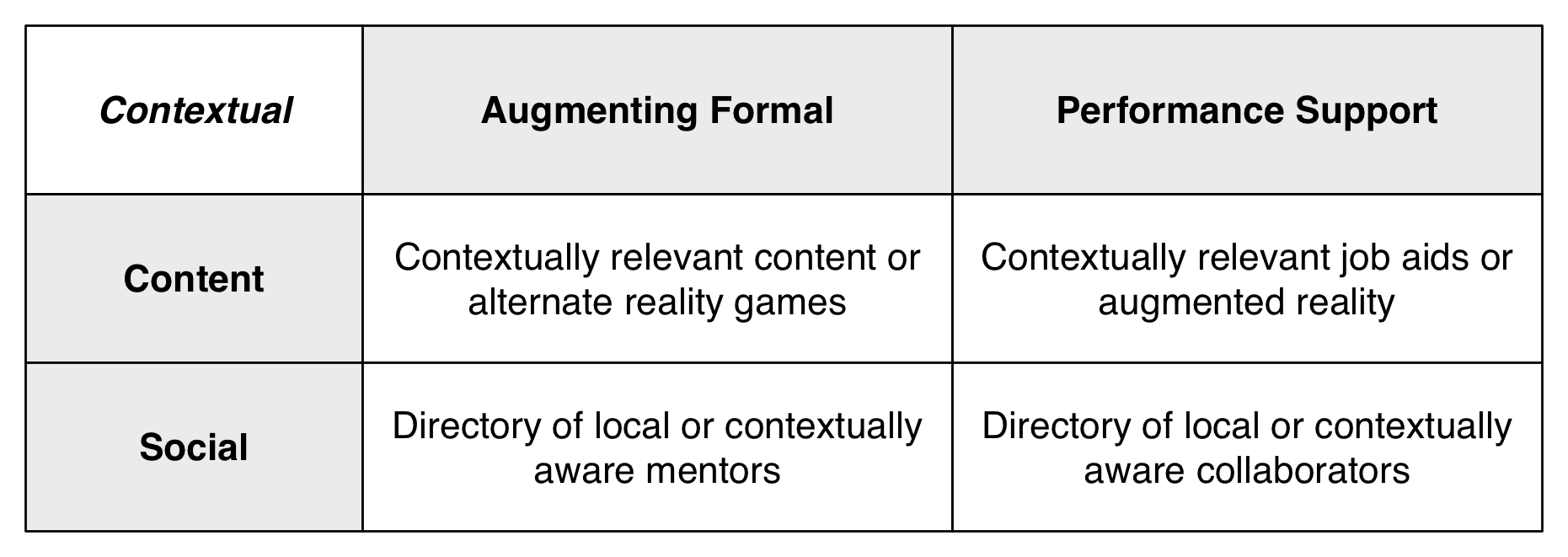 Some of my best interactions came online in small groups, not least the Internet Time Alliance (the rest of you know who you are). The chance to interact with colleagues like Jay, Jane, Charles, and Harold continues to be a fabulous boon. My only regret is that we didn’t quite get things going the way I’d originally hoped we would. Despite the intellectual firepower, we didn’t converge on a unified model until too late. I admit my limitation in that I couldn’t really be prepared to ‘go to market’ until we had a core framework that would serve as the basis for tools, a book, etc. When we finally did, it was too late as everyone had gone off in their own directions, of need. The model is still important, and will be revisited in the forthcoming tome, and while it can serve as a basis for us working together (we’re still an entity, and available), but the real benefit to us is the continued opportunity to interact intellectually as well as personally.