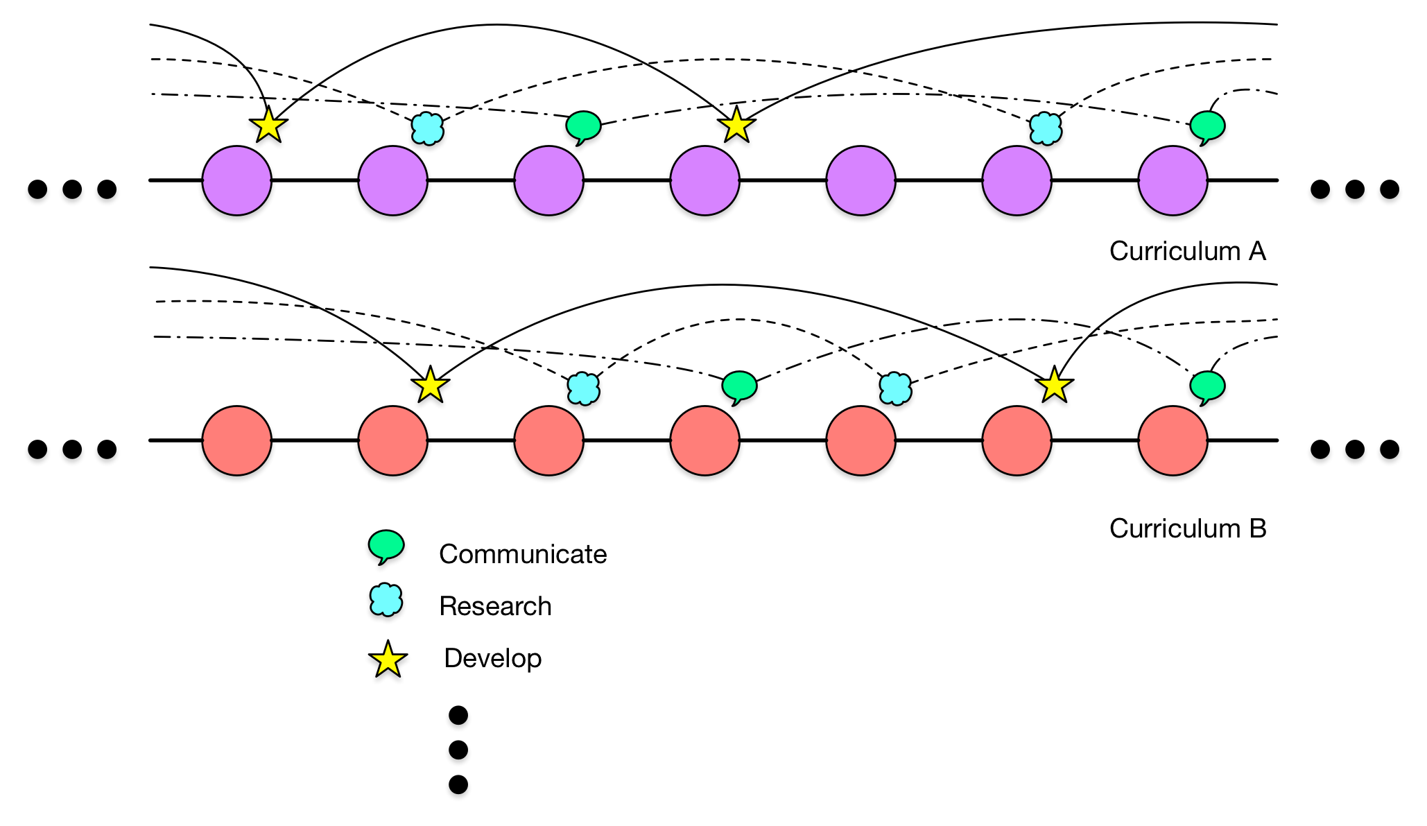 So my suggestion is to layer on these requirements across the curriculum, and assess them separately. The skills, like organizing, problem-solving, communicating, researching, etc, are naturally part of an activity-based curriculum, but need to be deliberately inserted at reasonable rates and tracked. It’s not hard, you choose this assignment (task/activity/practice) to include a presentation, that one to require research, another to require a design task, etc. And you assess them across assignments.