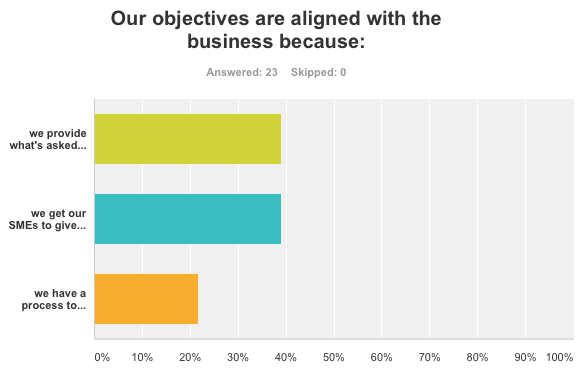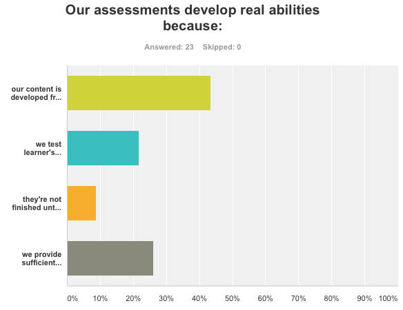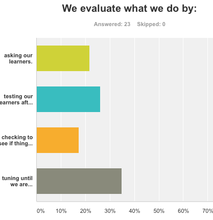 One of the first steps is to move to a performance consulting approach. If you start talking to those who are requesting courses and start digging in deeper into the real problem, you’re likely to start investing in better solutions. This is a relatively straightforward step that is a small change to what you’re doing and yet has the promise of both investing your resources in more relevant ways, and starting to demonstrate real contributions to organizational success.