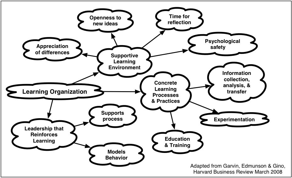 I used the Learning Organization Dimensions diagram (Garvin, Edmondson & Gino) to illustrate the components of successful innovation environment, and these were reflected in their comments. A number mentioned psychological safety in particular as well as the other elements of the learning environment. They also picked up on the importance of leadership.