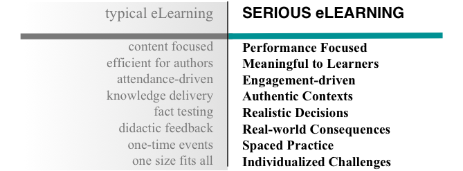 Last week, at Online Educa in Berlin, I gave a tutorial on deeper elearning as a pre-conference event. In it, I talked about getting more meaningful objectives, writing practice that actually develops meaningful outcomes, and content (concepts & examples) aligned to support effective practice. I also talked about emotional engagement and social learning, before talking about revising design processes to incorporate these deeper elements in an effective and not-too-different approach. In short, I was talking about aligning our designs, and our design processes, to how we think and learn.